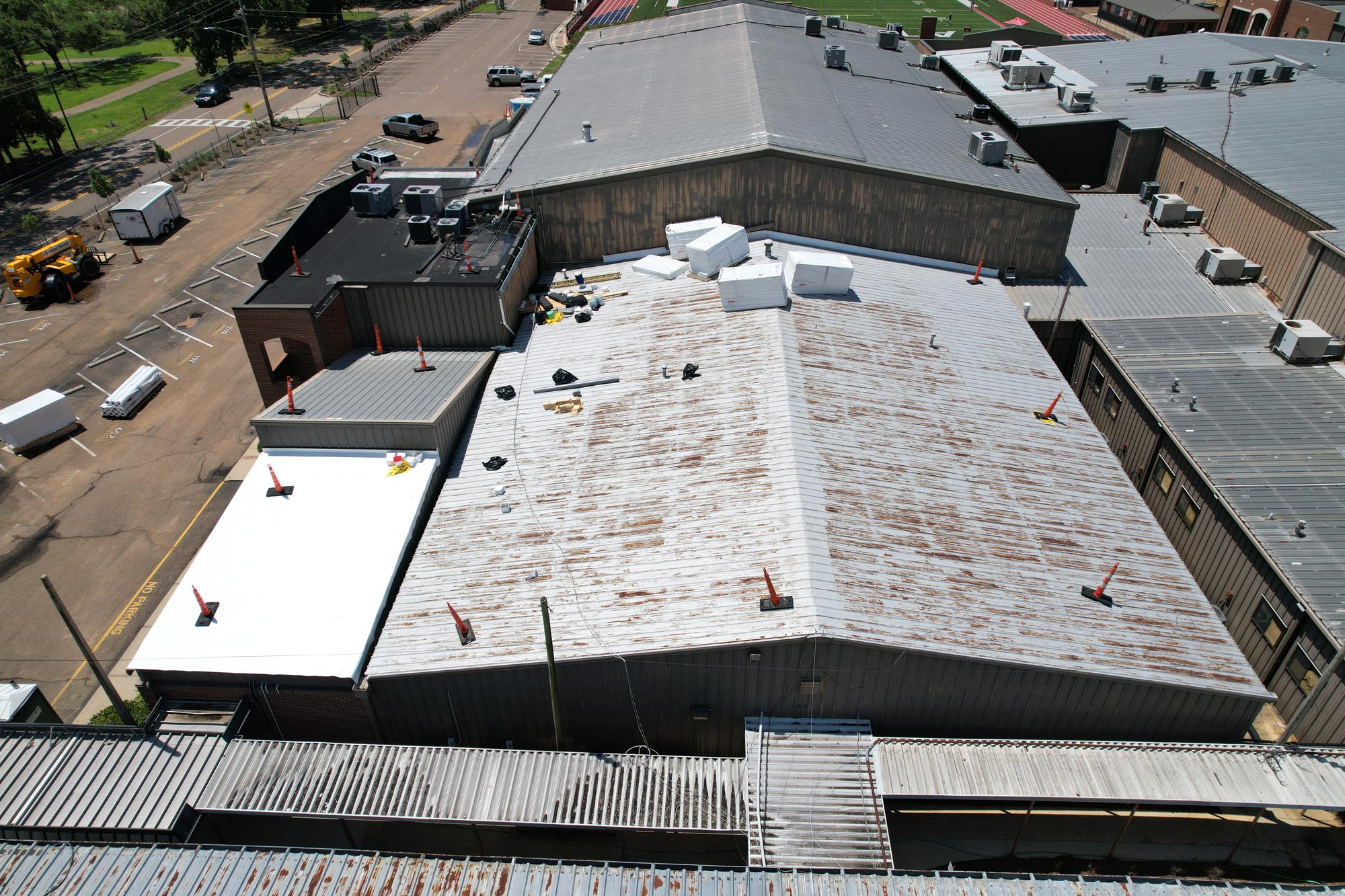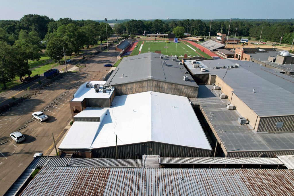 The original metal roof at Madison-Ridgeland Academy suffered from poor drainage due to design flaws, causing frequent water accumulation and maintenance issues. The school required a fast, effective retrofit solution that would improve performance without interrupting daily operations.