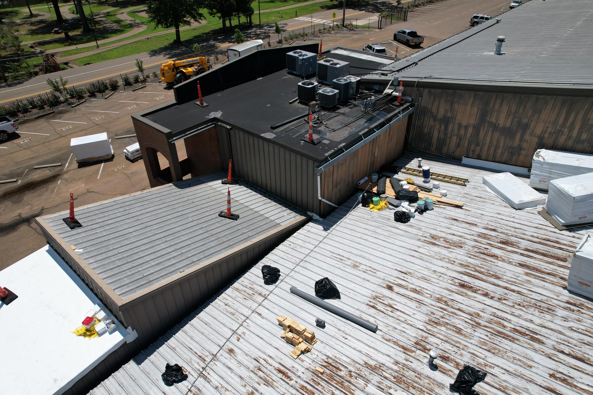 - TPO membrane installed over existing metal panels