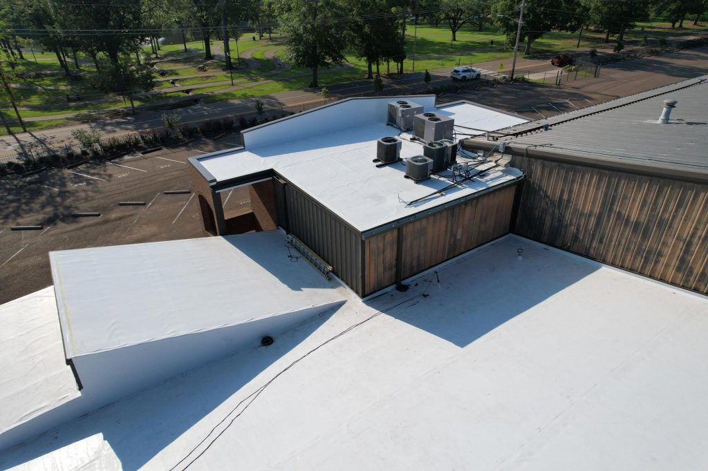 Independent Roofing completed a metal-to-TPO retrofit at Madison-Ridgeland Academy to resolve chronic drainage issues caused by the original roof design. Working around an active school environment, the team installed a custom TPO system over the existing metal panels, improving water flow with tailored flashings and edge detailing. The project was completed safely and efficiently, with minimal disruption to school operations and backed by a 20-year material and labor warranty.