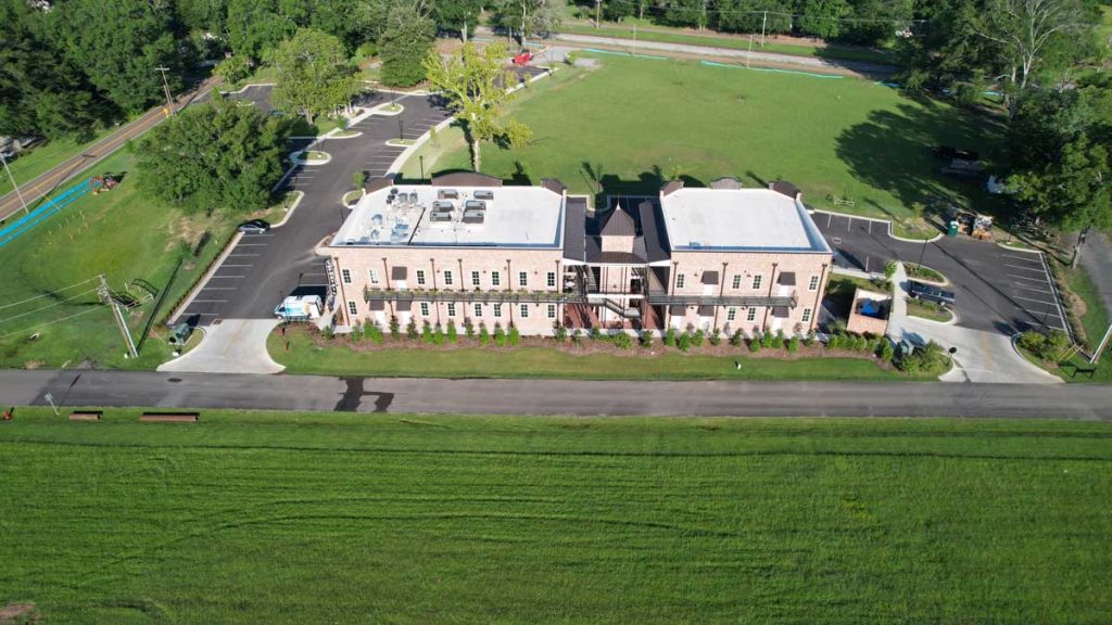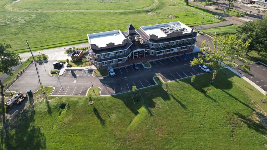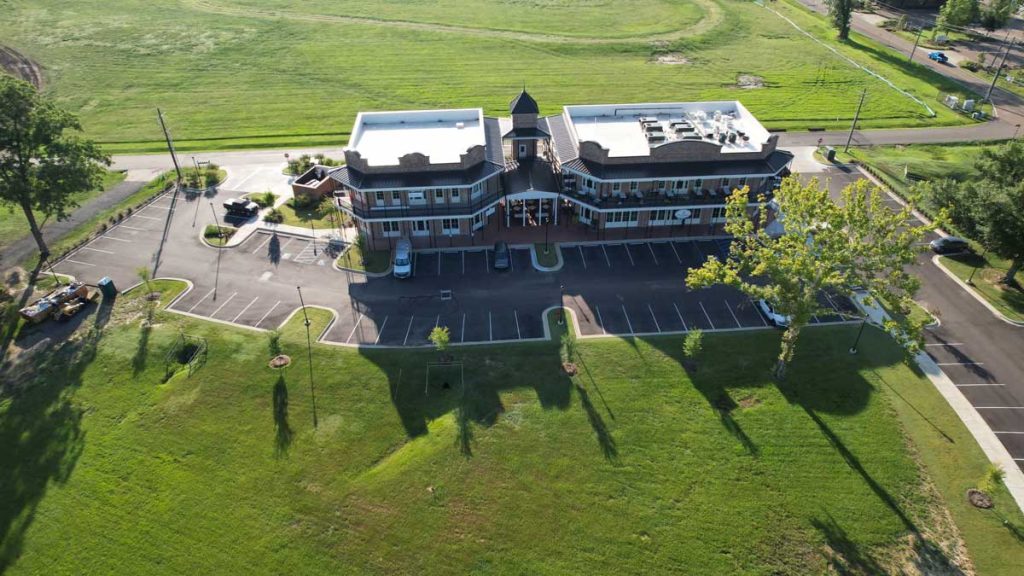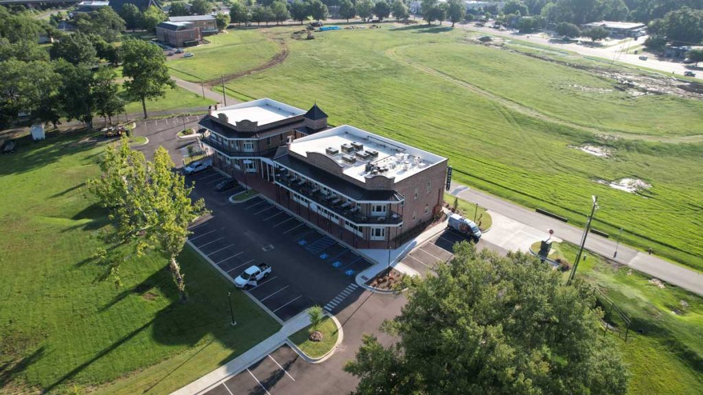 The Magnolia District is a vibrant new hospitality and retail development located in the heart of Madison, MS. Independent Roofing was selected to provide roofing solutions for two newly constructed multi-floor buildings that anchor this district. The project included 8,000 square feet of mechanically attached PVC roofing and 3,800 square feet of standing seam metal roofing, along with architectural elements like a custom copper finial crowning the elevator tower. Despite a tight construction timeline and unique drainage requirements, the team delivered a watertight, visually striking solution that contributes to the development’s upscale aesthetic.
