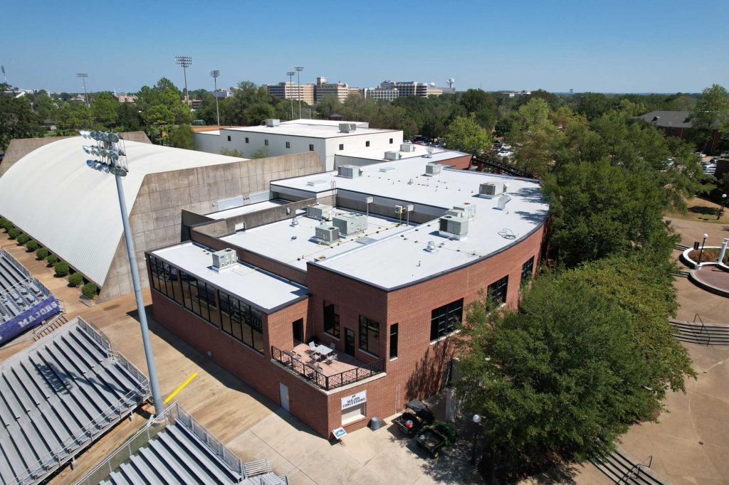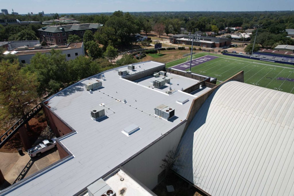 Independent Roofing Systems was selected to replace the aging roof of the Milsaps Hall Activities Center in the heart of Milsaps College’s Jackson, MS campus. The 2023 summer-scheduled project required quick execution and precise coordination due to the unique shape of the building and the complexity of the insulation taper system.